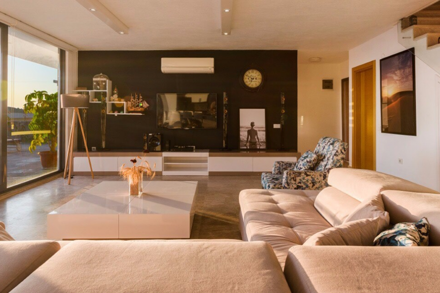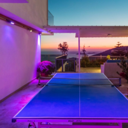 The villa’s rooftop terrace offers stunning views and is equipped with a bar area.