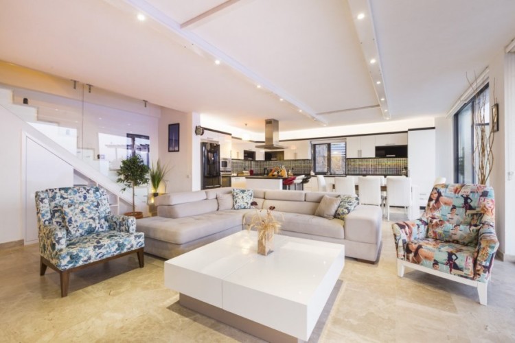 There is also a breakfast bar for 3 persons and a dining table for 8 people.